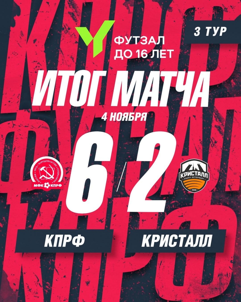 В рамках очередного тура ЮФЛ-16 команда «Арсенал-КПРФ» уверенно переиграла сверстников из «Кристалла». В стартовом отрезке «коммунисты» пропустили первыми, но тут же смогли сравнять счёт. Во второй половине наши юные футзалисты в середине игрового отрезка забили три мяча подряд и смогли удержать перевес до конца встречи, укрепив его ещё двумя голами.