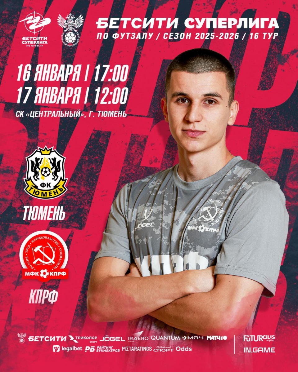 В 16-м туре чемпионата Бетсити Суперлиги МФК КПРФ вновь предстоит сыграть вдали от родных стен: двукратные чемпионы России отправятся в Тюмень.