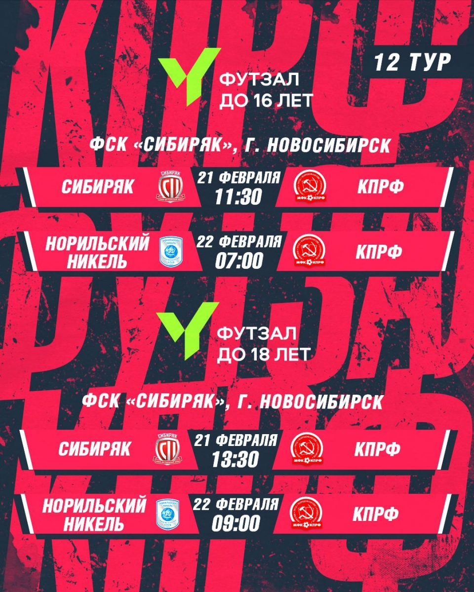 «Красная гвардия» и «Арсенал-КПРФ» сыграют в Новосибирске 19.02.2026, 12:27 «Красная гвардия» и «Арсенал-КПРФ» сыграют в Новосибирске Наших ребят ждут матчи 12-го тура ЮФЛ-18 и ЮФЛ-16 против «Сибиряка» и «Норильского никеля».