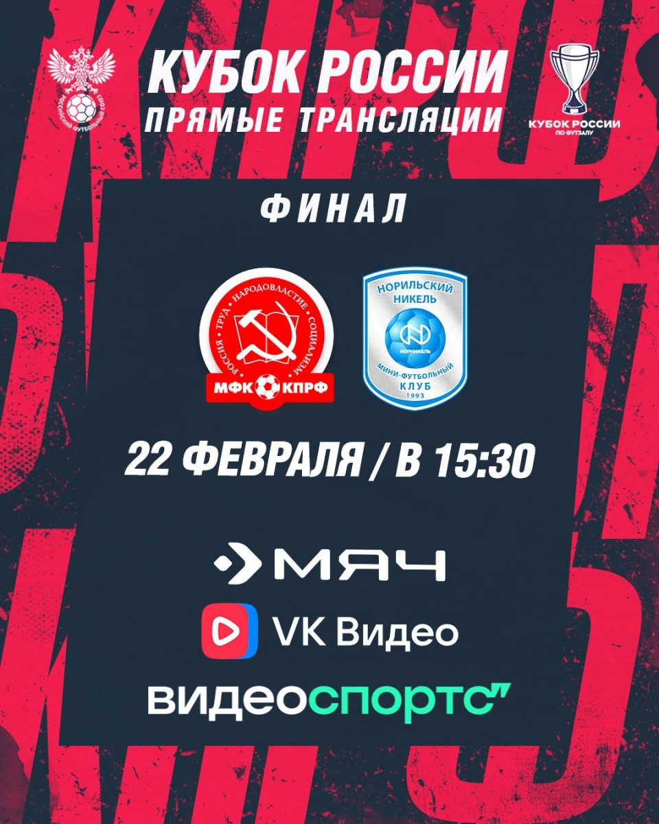 В воскресенье, 22-го февраля, МФК КПРФ сразится за трофей с "Норильским никелем".