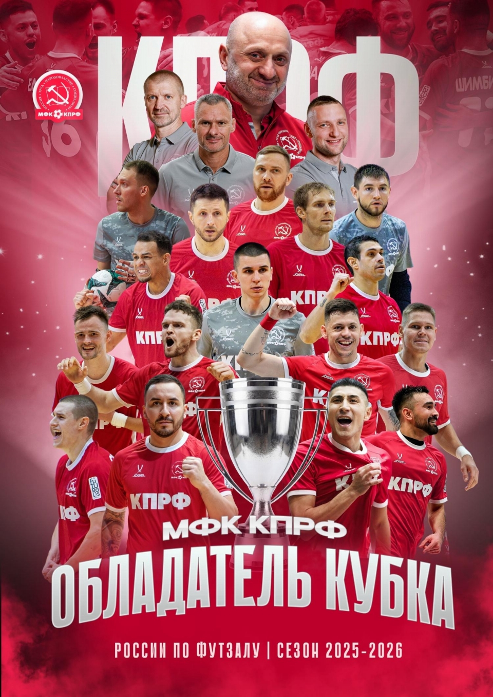 Браво, Команда! 22.02.2026, 18:23 Теперь МФК КПРФ - двукратный обладатель Кубка России по футзалу! Это уже второй трофей, который наша команда выиграла в текущем сезоне - ранее был взят Бетсити Кубок лиги.